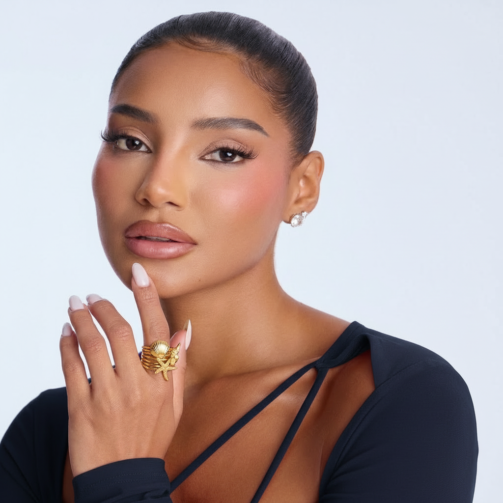 Ocean-inspired elegance meets modern design in this stunning shell ring. Crafted from durable stainless steel and dipped in 18K gold, the geometric coral-inspired design brings a touch of coastal beauty to your everyday style. Waterproof and hypoallergenic, this adjustable ring is perfect for those with sensitive skin who refuse to compromise on style.