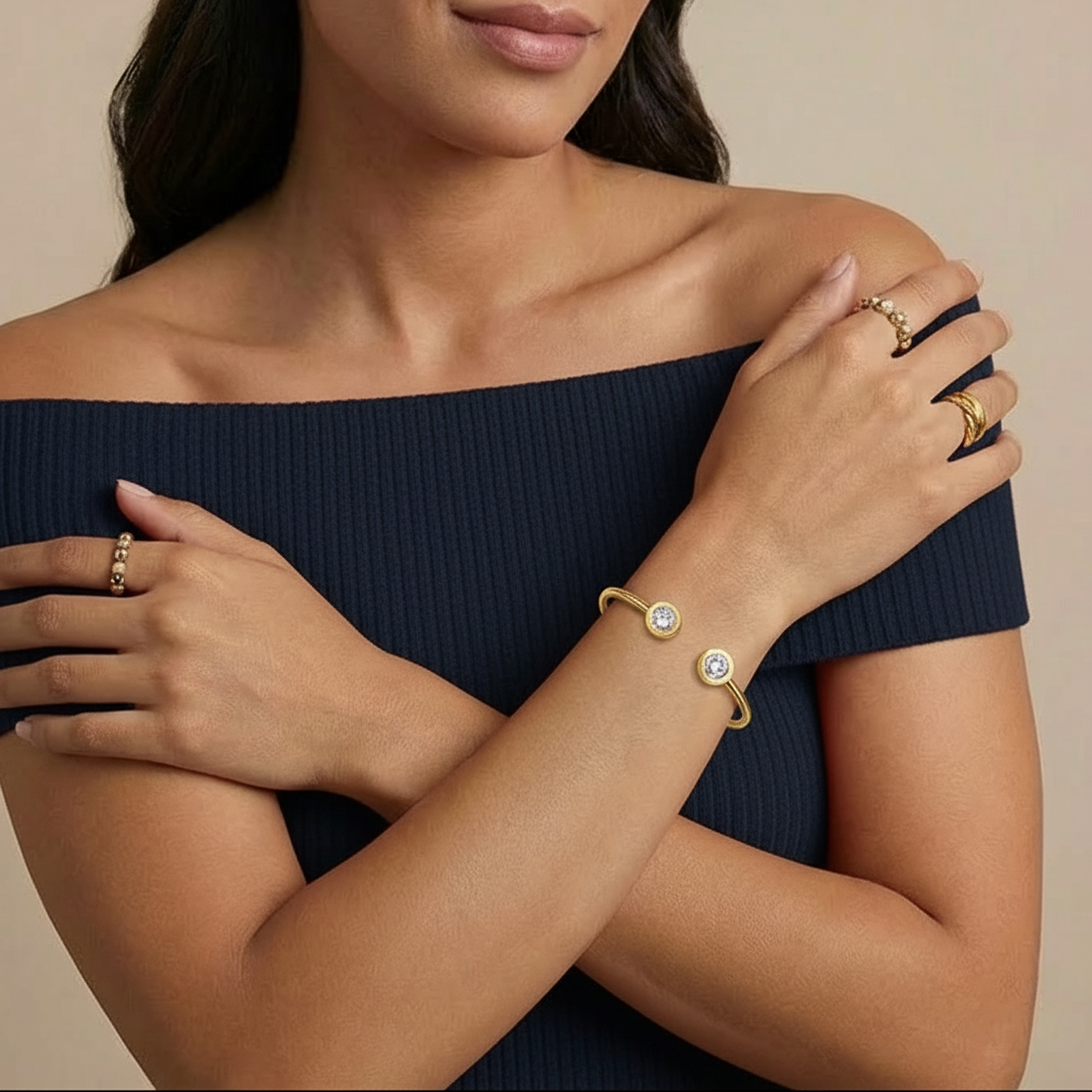 Elegant and meaningful, this personalized birthstone bracelet is crafted from durable stainless steel with a polished finish. A timeless statement piece that celebrates your unique story, perfect for everyday wear or gifting to loved ones.